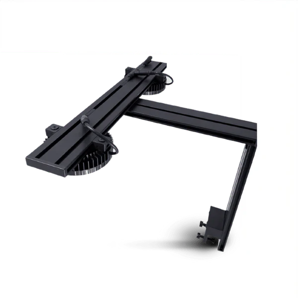 A strong, sleek aluminium mount that holds one single pixel which also serves as the heatsink of the light! This means no active cooling and no noisy fans.
